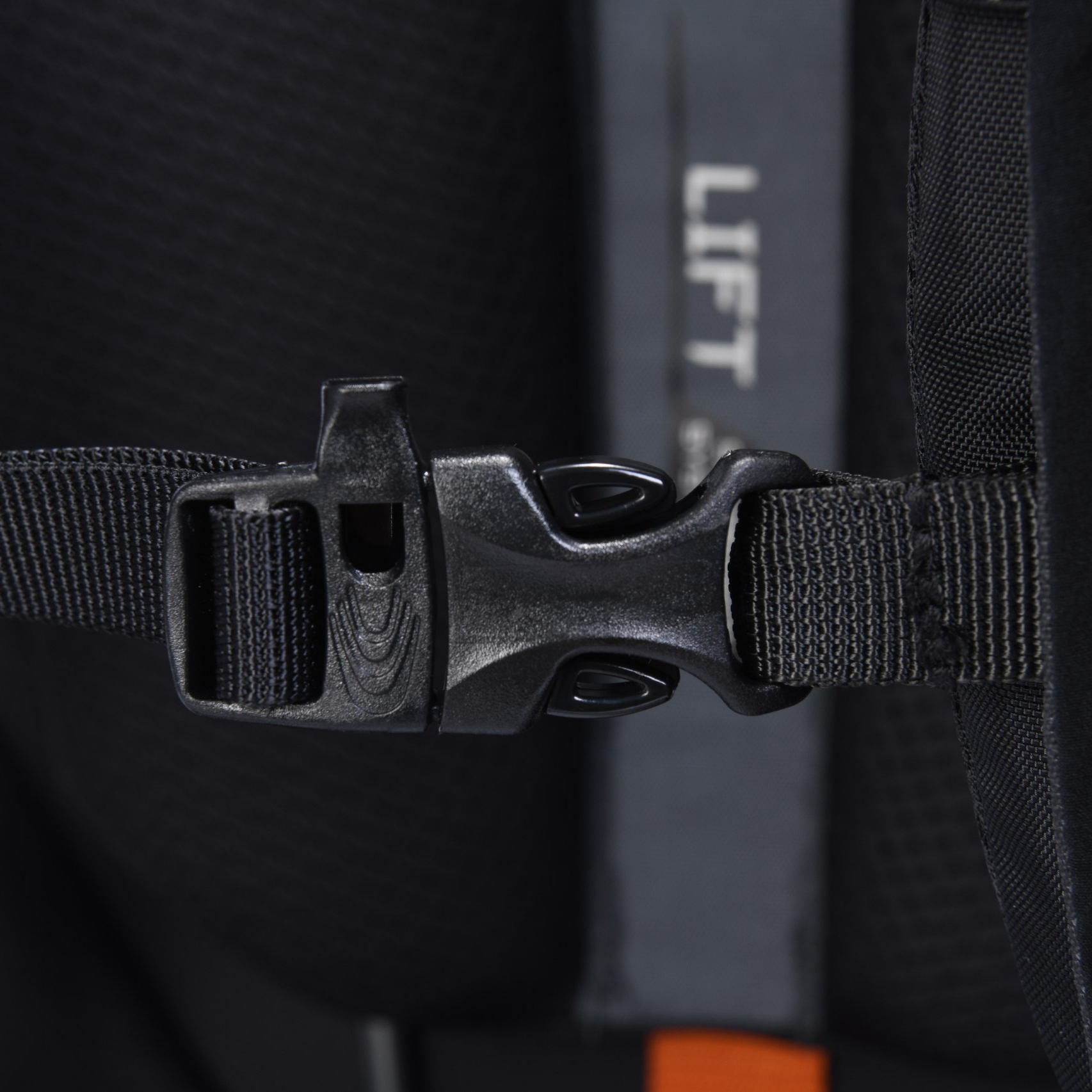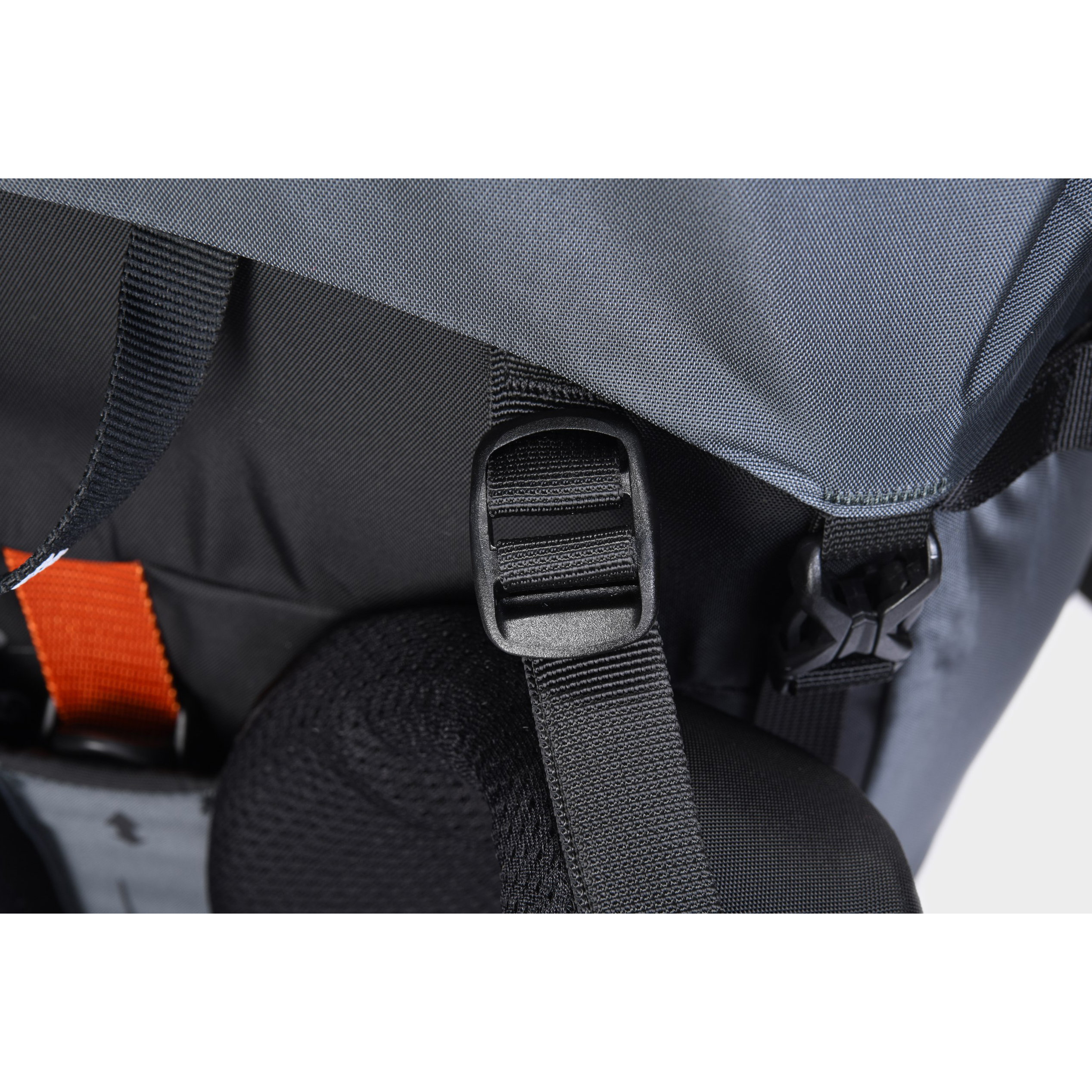 وجود بندهای فشرده سازی دوطرفه کنترل و ثبات بار را بهمراتب افزایش می دهد. این بندها اجازه می دهند حجم کوله متناسب با میزان تجهیزات تنظیم شود و در نتیجه از تکانخوردن وسایل در داخل کوله جلوگیری میکند. استفاده از سگک های Duraflex نیز تضمینی برای دوام، قدرت قفل شوندگی و عملکرد مطمئن در طولانی مدت است؛ سگک هایی که در برابر فشار، سرما و ضربه مقاومت فوق العادهای دارند و بهعنوان یکی از استانداردهای جهانی تجهیزات حرفهای شناخته میشوند.